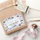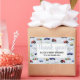 This cute and modern baby shower sticker design features a blue transport pattern, with cars, pickup trucks, trains, aeroplanes, diggers, tractors and helicopters. There is also space for you to add the mother's name and the baby shower date in a hand-written font. The perfect transport touch to your baby shower favours.