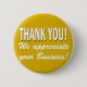 Thank you We appreciate your business in white on gold background available in button, sticker, or magnet. Have employees wear the button to thank your customers and let them know they are appreciated even if you are too busy to tell each person. Or use the sticker on your invoices or other special correspondence.