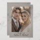 This customisable minimalist soft grey with a subtle leaves image wedding thank you card features a cherished photo of the bride and groom alongside an elegant message honouring the love and support of family and friends. With its simple, timeless layout, it's a beautiful way to share your gratitude and preserve the heartfelt moments that shape your new chapter together.