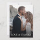 A beautifully designed thank you card with a dedicated space at the top for a cherished photo, capturing a special moment or memory. Below the photo, in elegant, flowing script, is the phrase "Love & Thanks," conveying heartfelt gratitude with simplicity and grace.