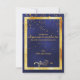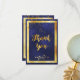 A dark midnight blue background colour and a faux gold frame. With a golden confetti rain. The blue colour is uneven. On front a hand lettered style script and the text: Thank You! and a floral faux gold decor.