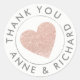 A bright rose heart on white circle sticker, with your own names, and the words Thank You