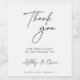 Personalise this elegant black script thank you wedding wine labels with your names and personal message to your wedding guests. These modern wine bottle labels feature a trendy black script typography on a traditional white background with the names of the bride and groom, your wedding date and thank you message. Simply edit these wine labels in the personalise section to create your own customised wedding thank you labels.