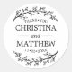 Personalise these vintage chic, french style wedding thank you stickers. Black and white colours. Hand drawn laurel, olive branches with bride and groom names. Editable - add your info (text can be changed to any font, size, and colour). Perfect for any theme or time of year wedding party.