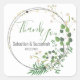 Show your gratitude with this chic design available in two sizes. It features a wreath of greenery and tiny white flowers in shades over a white background.