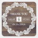 Thank You. White Lace Barn Wood Wedding Square Sticker