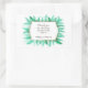 Thank you wedding favour watercolor botanical evergreen foliage green and golden lines art stickers. Printed from an original watercolor painting by Sarah Trett for www.mylittleedenweddings.com