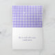 Cute Yorkshire terrier on white and purple gingham pattern with thank you text.