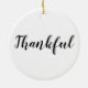 Thankful black and white script calligraphy cute thanksgiving Christmas Ceramic Ornament.