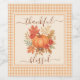 Dress up your wine bottles with festive charm using this Thankful & Blessed wine label. Featuring a cosy watercolor pumpkin surrounded by autumn leaves and florals on a rustic gingham background, this label is the perfect accent for Thanksgiving dinners, fall weddings, harvest parties, or seasonal gifts.