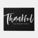 Add to your fall decor with this personalised "thankful" Thanksgiving doormat. Featuring a modern brush lettering "thankful" along with your family name or any custom text, this doormat is designed to coordinate with the Lea Delaveris Design thankful collection. Also makes a great hostess gift.