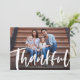 A modern brushy script "thankful" sits on a single horizontal photo on this Thanksgiving card. Perfect to send to family and friends with your fall photo. Also works well as a thank you note. The back has an orange colour that coordinates with the Lea Delaveris Design Thankful collection, but it can be modified by clicking "customise."