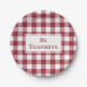 Thankful Burgundy White Gingham Plaid Thanksgiving Paper Plate
