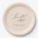Thankful Calligraphy & Leaves Family Thanksgiving Paper Plate