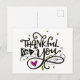 ©2019, hand lettered post card design by Dio Perez. Card reads: "Thankful for you". Everyone deserves to know they are appreciated, so send them a postcard to remind them! Do you have an amazing friend, partner, teacher, barista, therapist, child or amazing parents? Make their day a little brighter and let them know you’re thankful for having them in your life.