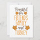 Thanksgiving greeting card with words "Thankful for friends family and turkey". Add your own message to the back.