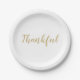 Thankful gold and white script cute thanksgiving paper plate
