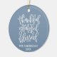 Calligraphy Thankful Grateful Blessed Ornament - Family Name and Year - Winter Dusty Blue with Photo on Back