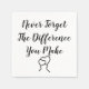 The phrase "Never Forget the Difference You Make" is a powerful reminder of the impact we can have on the world around us. It encourages us to recognise the positive influence our actions, words, and presence can have on others. Whether it's a small gesture of kindness or a significant contribution to a cause, every individual has the potential to make a difference.
