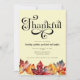 Invite to a Thanksgiving dinner with your close ones and show gratitude. This yellow mustard invitation are decorated with a beautiful script font with the lettering Thankful and colourful autumn watercolor leaves in shades of yellow, orange and red.