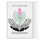 The hands and plant design is made from the words for "thankful" in 41 languages from around the world.