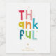 THANKFUL thanksgiving modern bright colourful type Wine Label