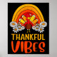 Thankful Vibes Turkey Retro Groovy Thanksgiving Ra Poster