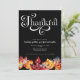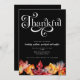 Thankful White Script Colourful Watercolor leaves Black Invitation.