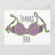 A purple and key lime green bra, with the text saying, "Thanks Bra."