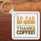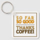 Give thanks for caffeine. It's gotten you to where you are in life! "So far so good. Thanks, coffee!" Makes a great keychain for your coffee vault, where we just KNOW you hide the good stuff.
