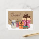 This cute winter holiday thank you postcard features a funny snowman rejoicing about the gifts he has received.