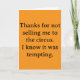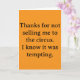 Thanks for not selling me to the circus. I know it was tempting card