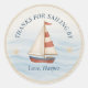 Thanks for Sailing By | Nautical Blue Sailboat Classic Round Sticker