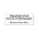 This rubber stamp design features the grateful message "THANKS FOR YOUR PURCHASE!" and a personalised company name. It could be used by a company, an organisation, a professional, or a business to give thanks to clients or customers.