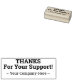 This thankful rubber stamp design features the message "THANKS For Your Support!" and a customisable company/business/organisation name. It might be used by a business, a company, a professional, or an organisation to give thanks to clients or customers who have made a purchase.