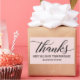 Thank you stickers feature modern black script "thanks" text and sleek custom text that can be personalised with a custom message and store name. Perfect to accent your sales. The pastel ballet pink background colour can be customised.