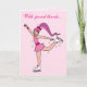 An ice skater in pink decorates this thank you to an ice skating coach. For matching items, type "penguincornerstore skating" into the Zazzle search bar.