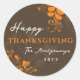 'Happy Thanksgiving' Decorative Orange Leaves On Brown And Swirls Thanksgiving Design - Party Favour Sticker / Envelope Seal.