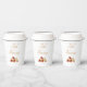Thanksgiving Leaves autumn paper cups, with a red and gold design and elegant script typography. With gold customisable lettering, you can add your own message. A festive addition to your Thanksgiving dinner or fall harvest open house party.