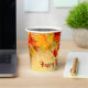 Exquisite customised Thanksgiving paper cup design showcasing a charming border of fall foliage against the backdrop of vintage parchment, thoughtfully adorned with an area designated for your unique message. The wording is entirely adaptable to your preferences, adding a personal touch to your seasonal celebration.