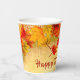 Exquisite customised Thanksgiving paper cup design showcasing a charming border of fall foliage against the backdrop of vintage parchment, thoughtfully adorned with an area designated for your unique message. The wording is entirely adaptable to your preferences, adding a personal touch to your seasonal celebration.