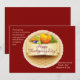 Send your Thanksgiving holiday wishes with this Basket Weave design. It features a centre basket weave medallion with vegetables of the season and a "Happy Thanksgiving Day" message.