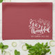 Thanksgiving Be Thankful Script Harvest Burgundy Tea Towel