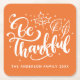 Thanksgiving Be Thankful Script Harvest Orange Square Paper Coaster