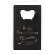 Happy Thanksgiving Elegant Credit Card Bottle Opener, Black and Gold Look Typography, you can add name or your text, unique Thanksgiving Gift for clients, customers, family and friends
