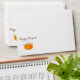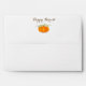 Thanksgiving card envelope shown with a cute festive pumpkin print on the front and the back flap and has a coloured inside.