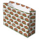 Gift bag features an original illustration of a turkey on a platter. Ideal for Thanksgiving or Christmas gift-giving! Matching gift tags, wrapping paper, ribbon, and tissue available.