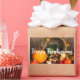 Stickers with a photograph of a thanksgiving harvest, set on a rustic wooden table. Pumpkin, potatoes, squash etc... make up this bountiful collection of food. Colourful autumn leaves surround the cornucopia basket.