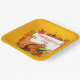 A Beautiful And Festive Thanksgiving Day Square Paper Plate In Orange With Fall Leaves and Cornucopia