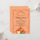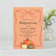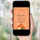An atomic tangerine coloured background. Decorated with pumpkins, and a hand-drawn bow. Personalise and add the party details.